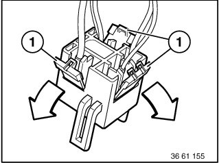 With special tool 61 1 136 or 61 1 137 (pressing-off tool), press back retaining hooks (2) of appropriate contact and pull out cable with contact.