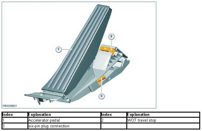 The sole function of the accelerator-pedal module is to relay information regarding driver demand. It does not directly intervene in the operation of any other actuator. The engine-management control unit must ensure that the vehicle reverts to a safe and secure condition should the sensor signals fail.