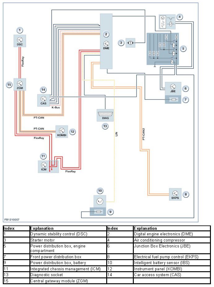 - Main bus systems: FlexRay, K-CAN, K-CAN2, MOST, PT-CAN and PT-CAN2