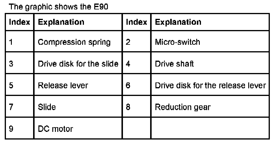 The drive for the trailer coupling release consists of a direct current motor and a reduction gear. The following components are integrated in the release unit: