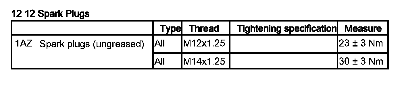 Tightening torque 12 12 2AZ.