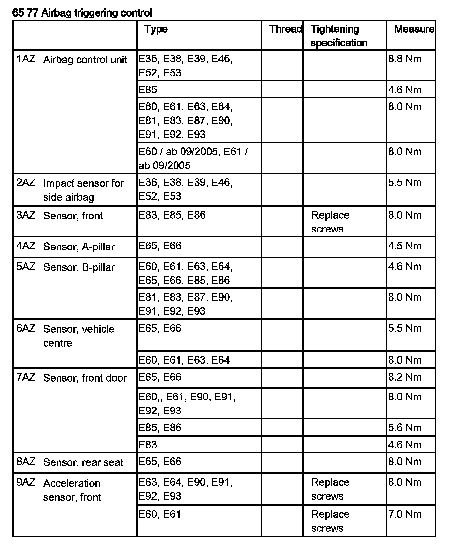 65 77 016 Removing And Installing/replacing Airbag Control Unit