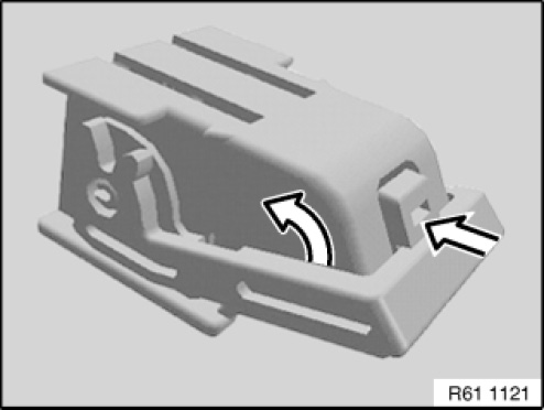 Open clip in direction of arrow and disconnect plug connection in direction of arrow.