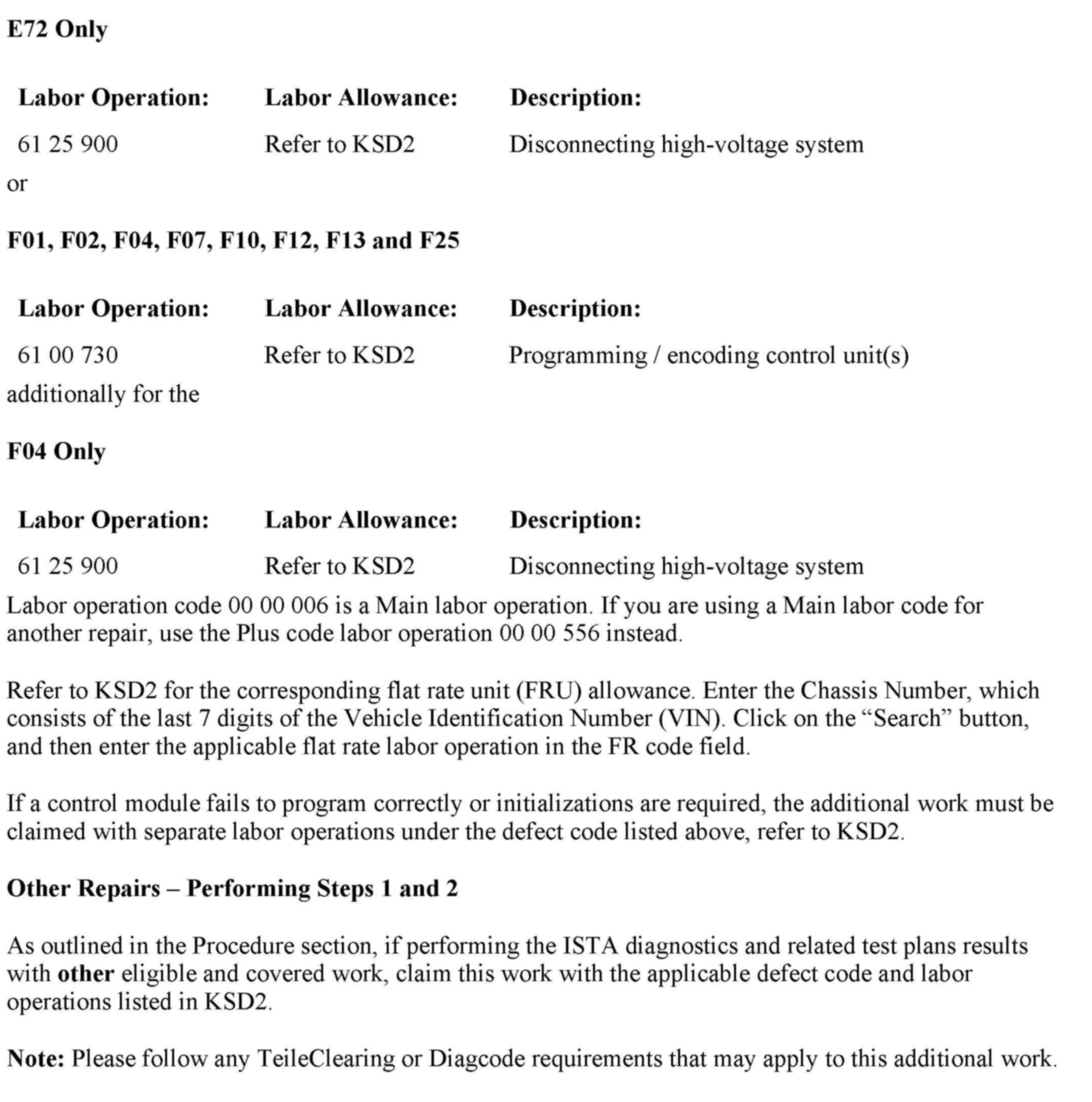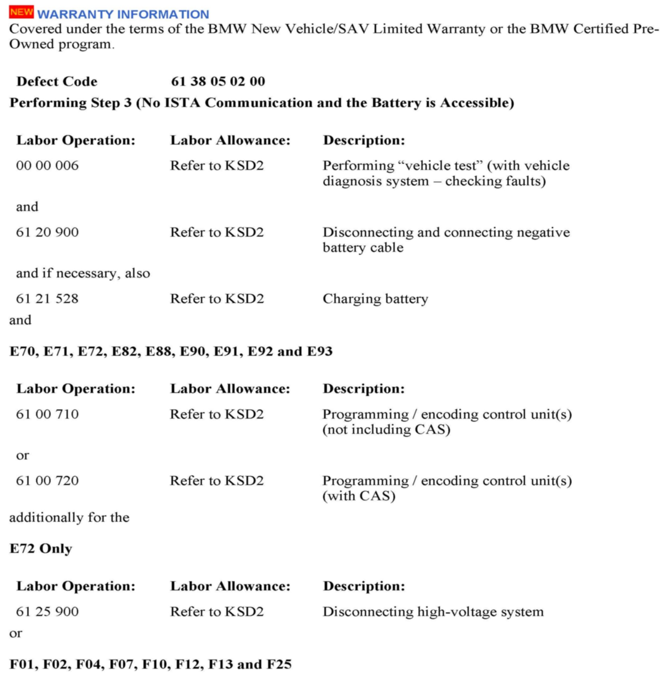 1. Perform a vehicle test using the latest ISTA (Integrated Service Technical Application) diagnostic software.