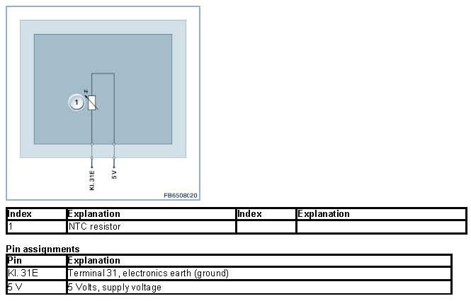 The temperature sensor converts the temperature of the coolant after the radiator into an electrical value (resistance). To do this, a resistance with negative temperature coefficient (NTC) is used. The coolant temperature is the measured variable for the following calculations, for example: Fuel injection rate and nominal idle speed.