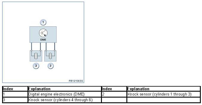 The following graphic shows the system overview of the knock control with the engine N55: