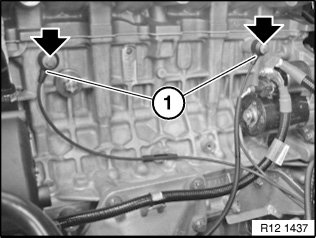 Release screws on both knock sensors (1) and remove knock sensors (1).