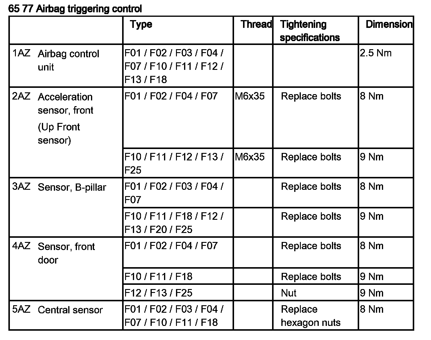Tightening torque 65 77 1AZ.