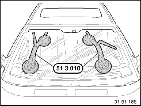 Use suction cups (51 3 010) to lift out the window glass.