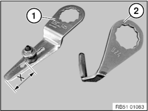 Dimension (X) on the knife (1) can be adjusted individually, see vehicle-specific repair instructions.