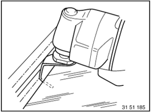 Tape off body with fabric adhesive tape (e.g. Tesa) in areas where the oscillating knife could damage the window glass or the paint.