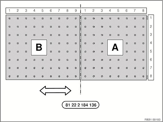 Working plate (A and B) is subdivided by a coordinate system and a possible installation position is recommended in the respective repair manual.
