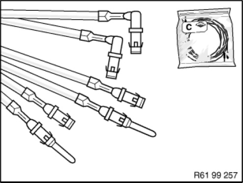5. Make sure that no safety-related system according to circuit diagram (e.g. antilock braking system, active rear-axle kinematics, airbags, etc.) are influenced. Otherwise replace faulty wiring harness or use repair cable (sourcing reference: BMW Parts Service)