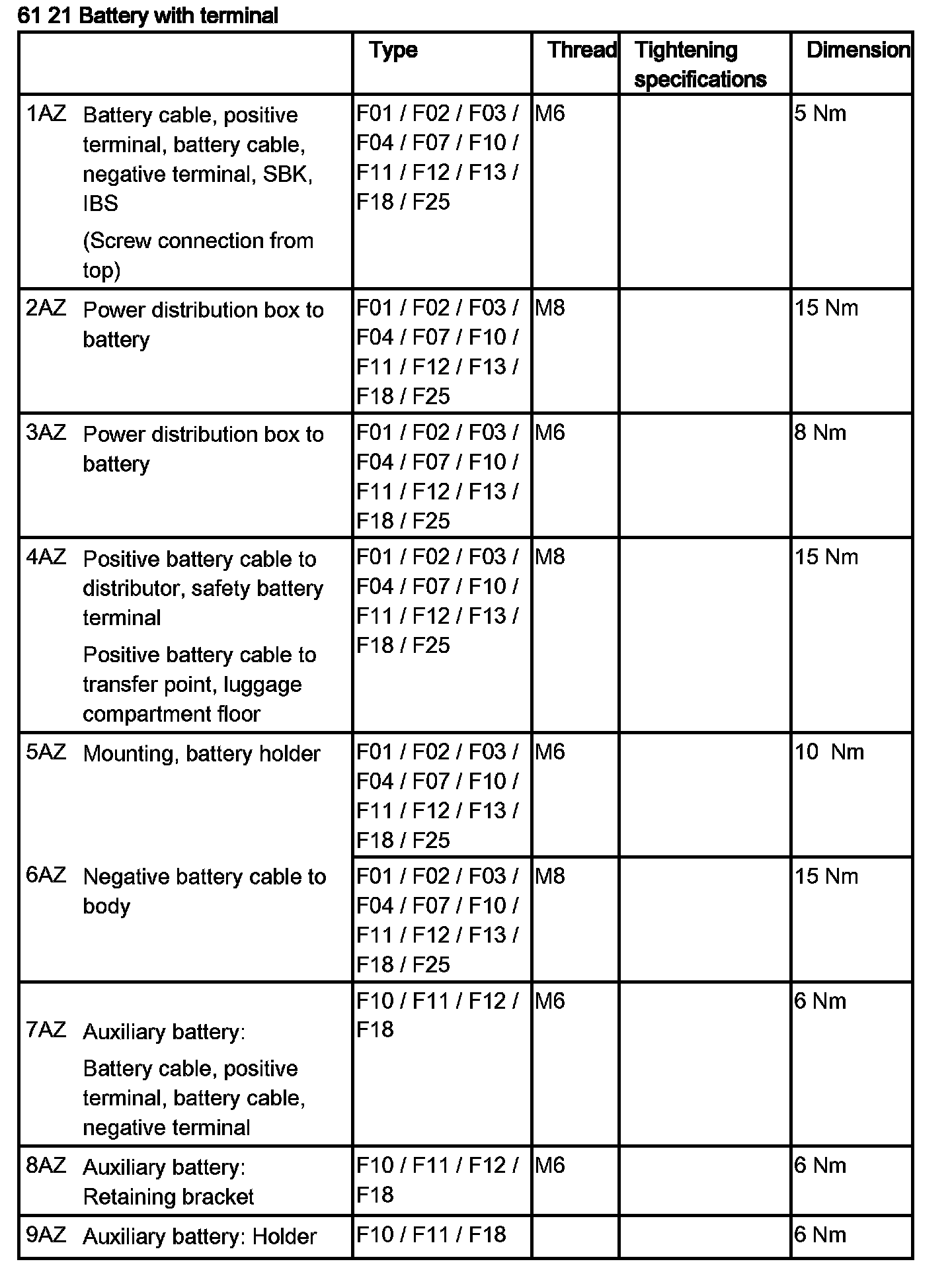 - Connect battery negative terminal and tighten, tightening torque 61 21 1AZ