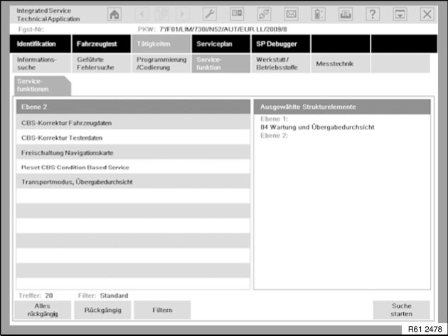 The service function CBS vehicle data correction is available if resetting has been carried out unintentionally. Thus the availability of a maintenance operation can be corrected to a value which corresponds more closely to the actual situation.