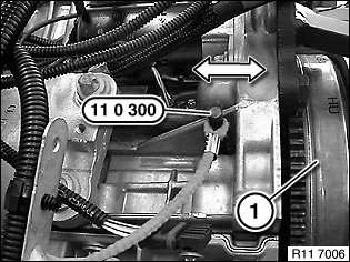 Slide in special tool 11 0 300 in direction of arrow.