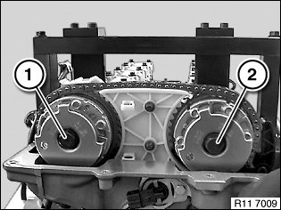 Detach exhaust camshaft adjuster (1) from exhaust camshaft.