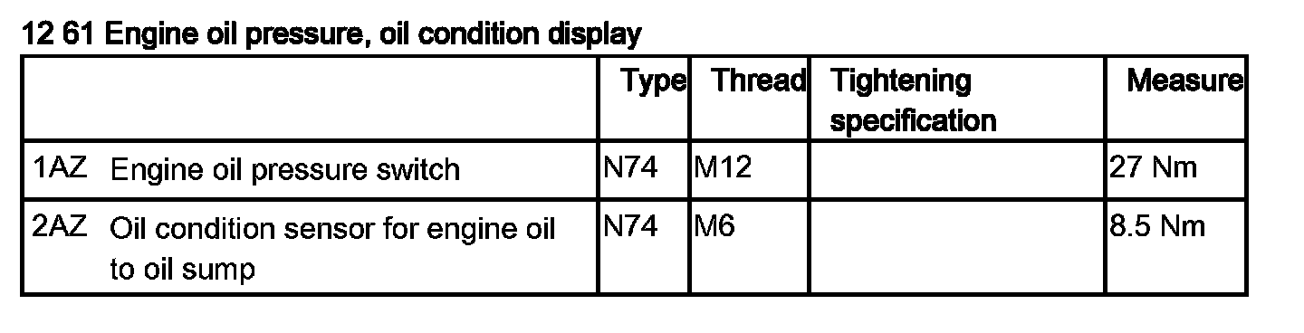 12 61 280 Removing And Installing/Replacing Oil Pressure Sensor (N74)