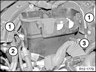 Unclip coolant lines at retainer (2) from electronics box.