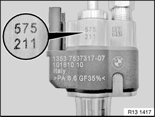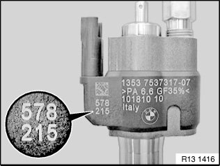 Read off the adjustment values and enter according to the installation location (cylinder) of the injectors: