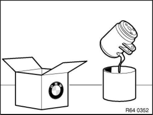 After installing the new compressor, it is essential before filling the heating and air conditioning system to pour the same amount of the previously drawn off refrigerant fluid into the system again, see Evacuating the heating and air conditioning system.