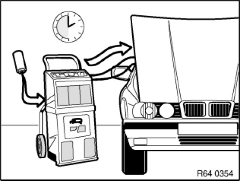 - Switch on heating and air conditioning system and run for at least 2 minutes at idle speed (risk of damage at increased engine speed.)