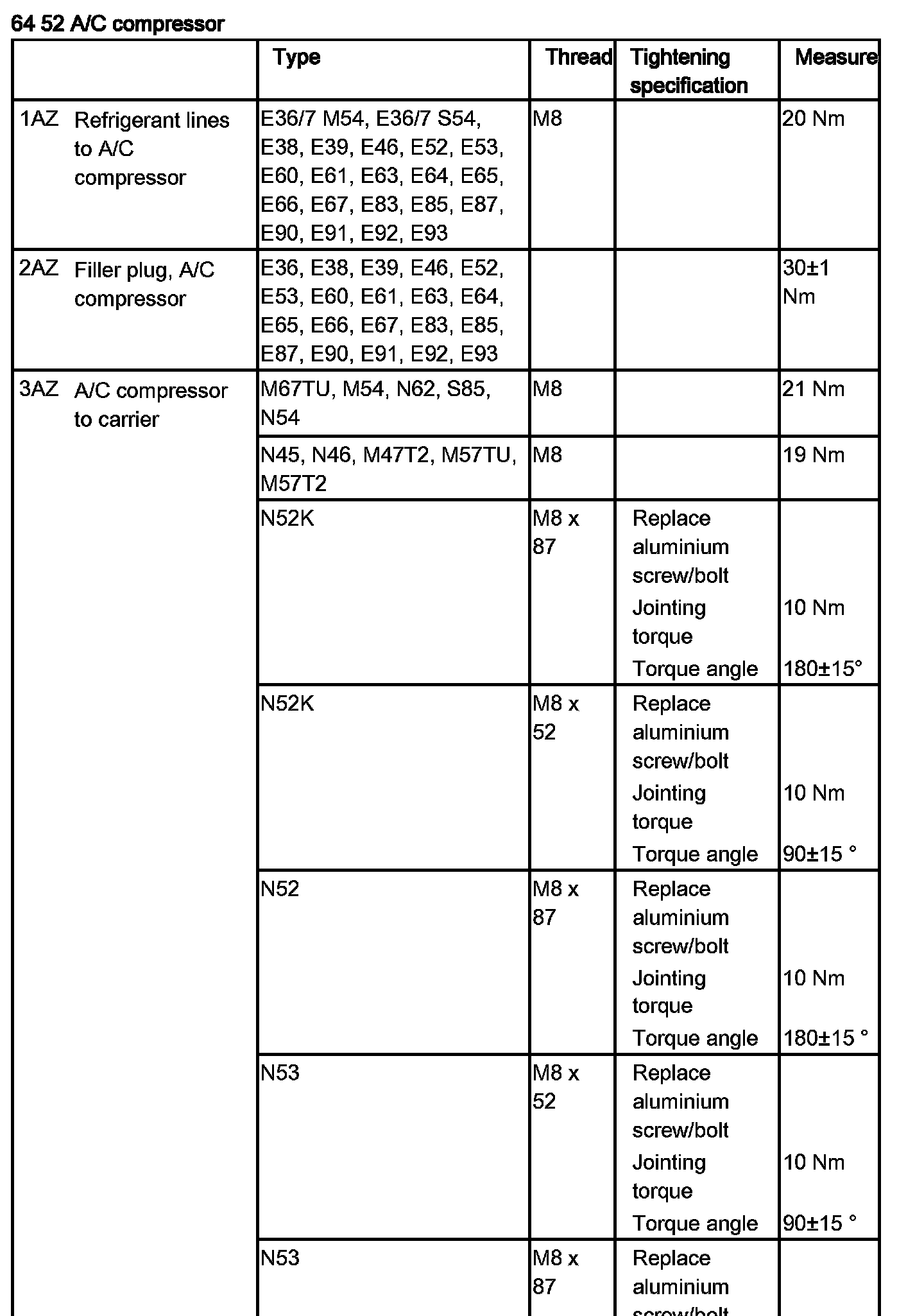 Observe tightening torque, 64 52 2AZ.