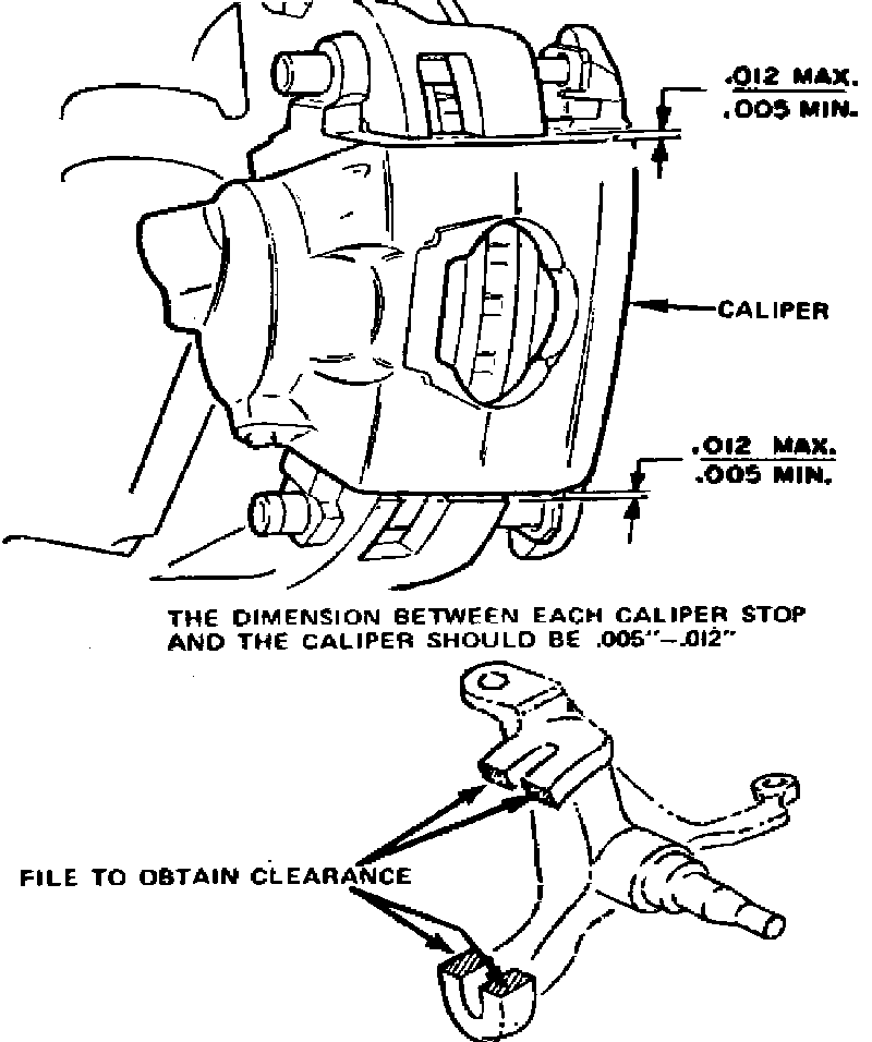 5. Check the dimensions between each caliper stop and caliper, Fig. 9.