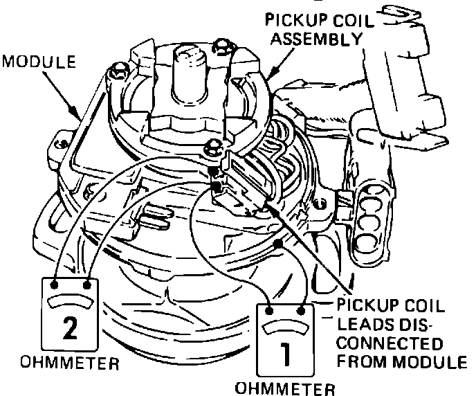 Step 2 - Should read one steady value between 500- 1500 ohms as leads are flexed by hand. If not, pickup coil is defective.
