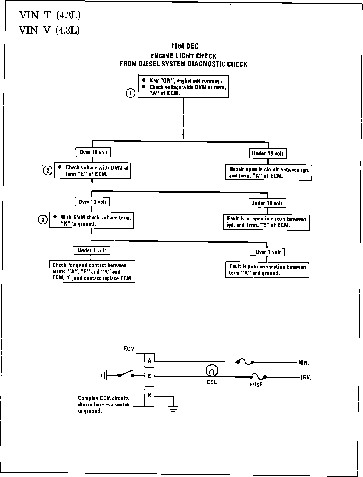 Fig. 006 - WIRING DIAGRAM for DEC Engine Light Check. VIN T, VIN V: