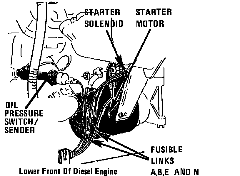 The Oil Pressure Switch is located on the front of engine, right of oil filter.