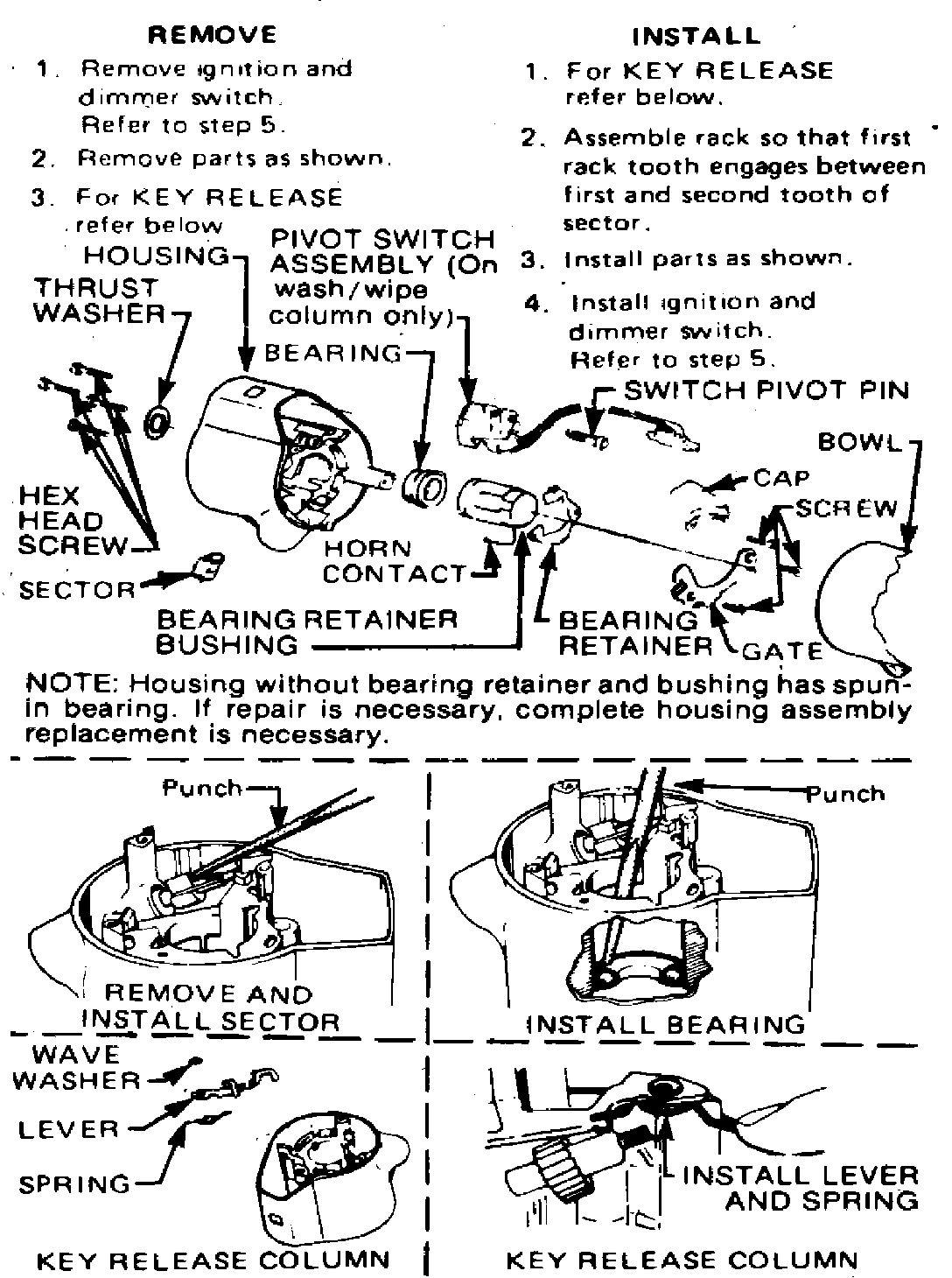 Fig. 5 Housing & wiper switch removal & installation. Standard steering column: