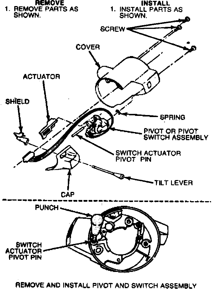Fig. 6 Cover & wiper switch removal & installation. Tilt steering column: