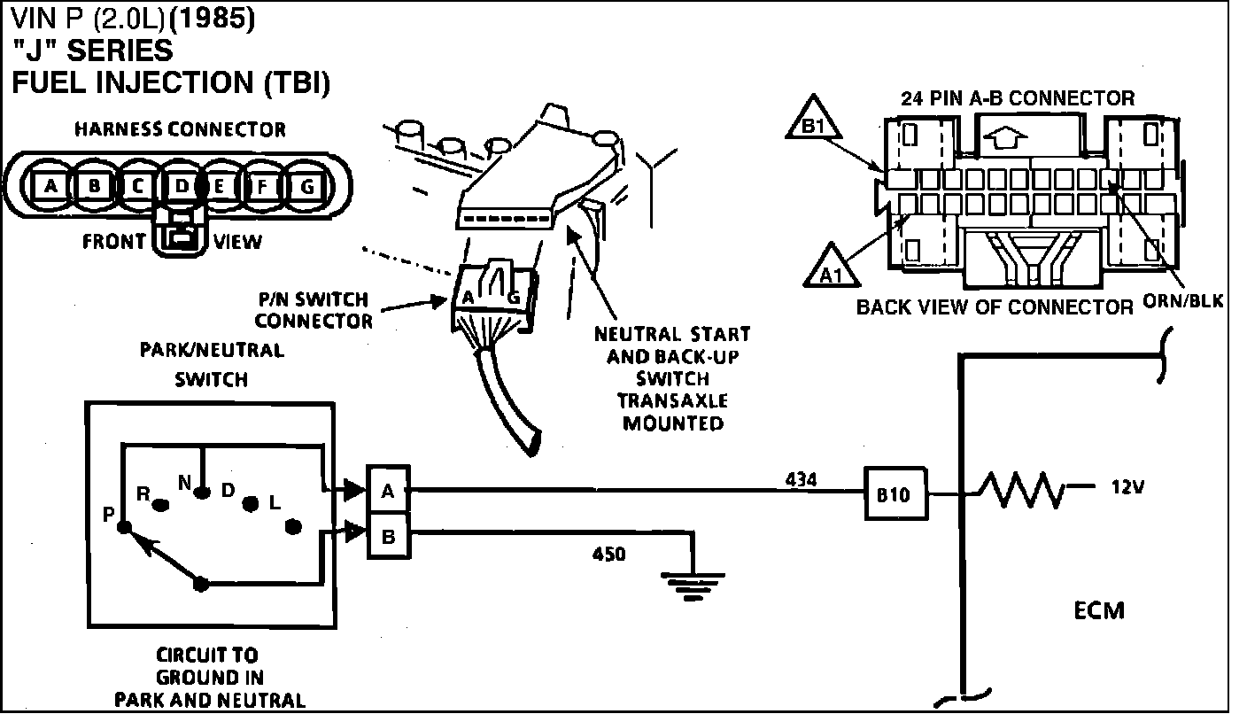 The Park/Neutral Switch contacts are a part of the Neutral Start switch and are closed to ground in park or neutral, and open in drive ranges.