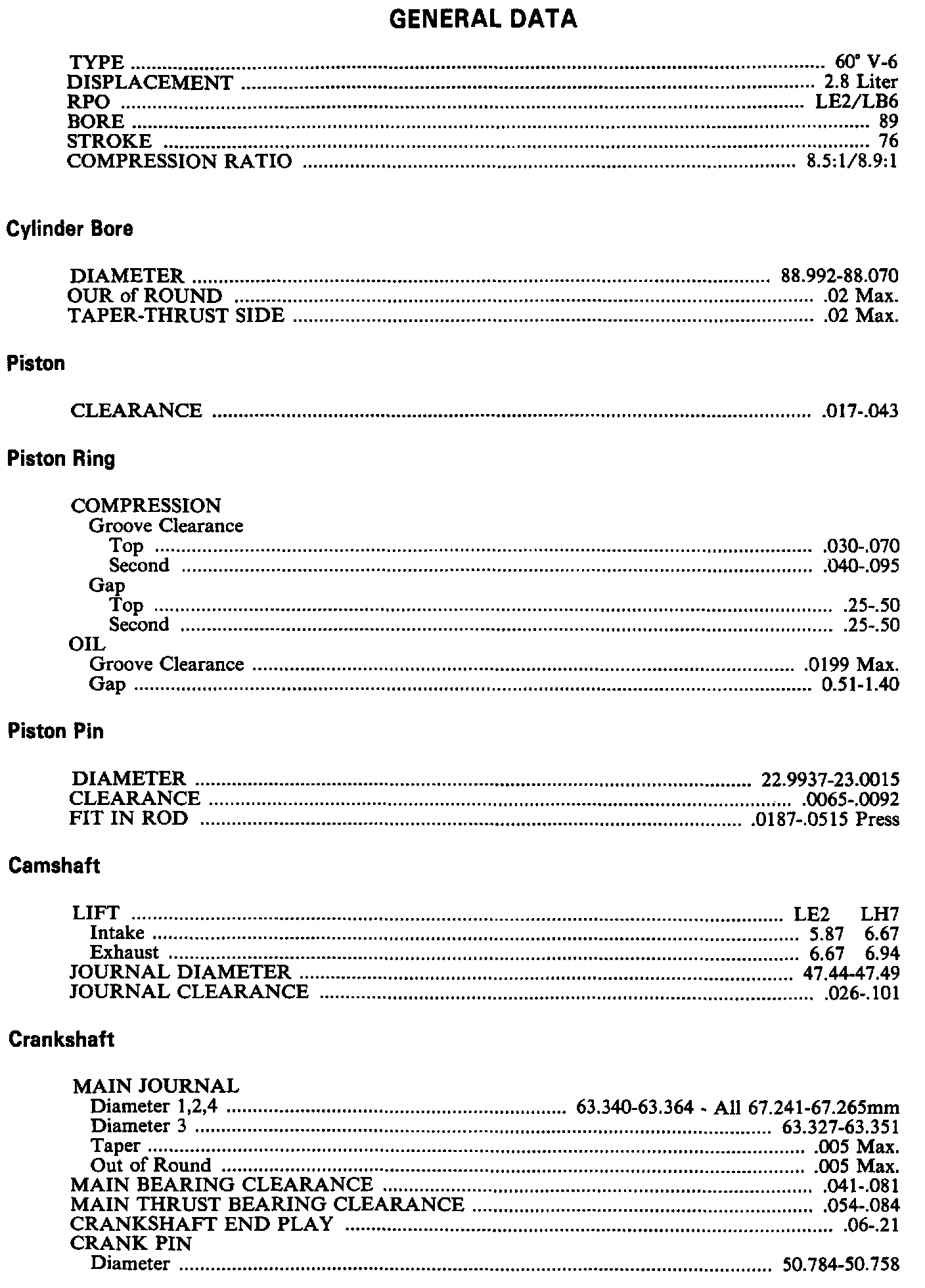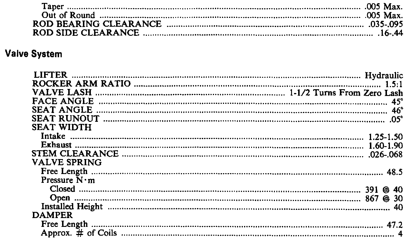 Continued Engine Specifications: