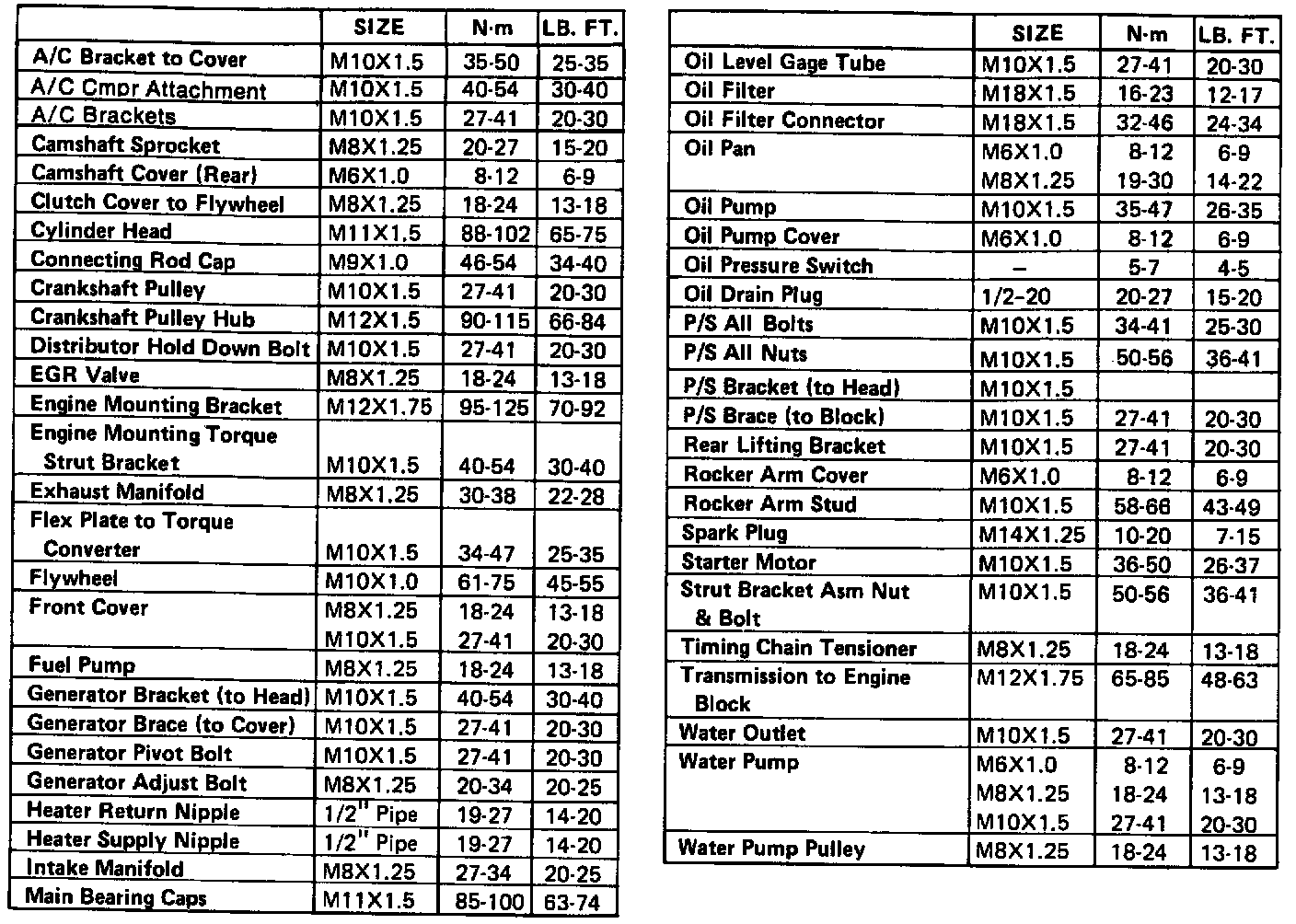 Torque Specifications: