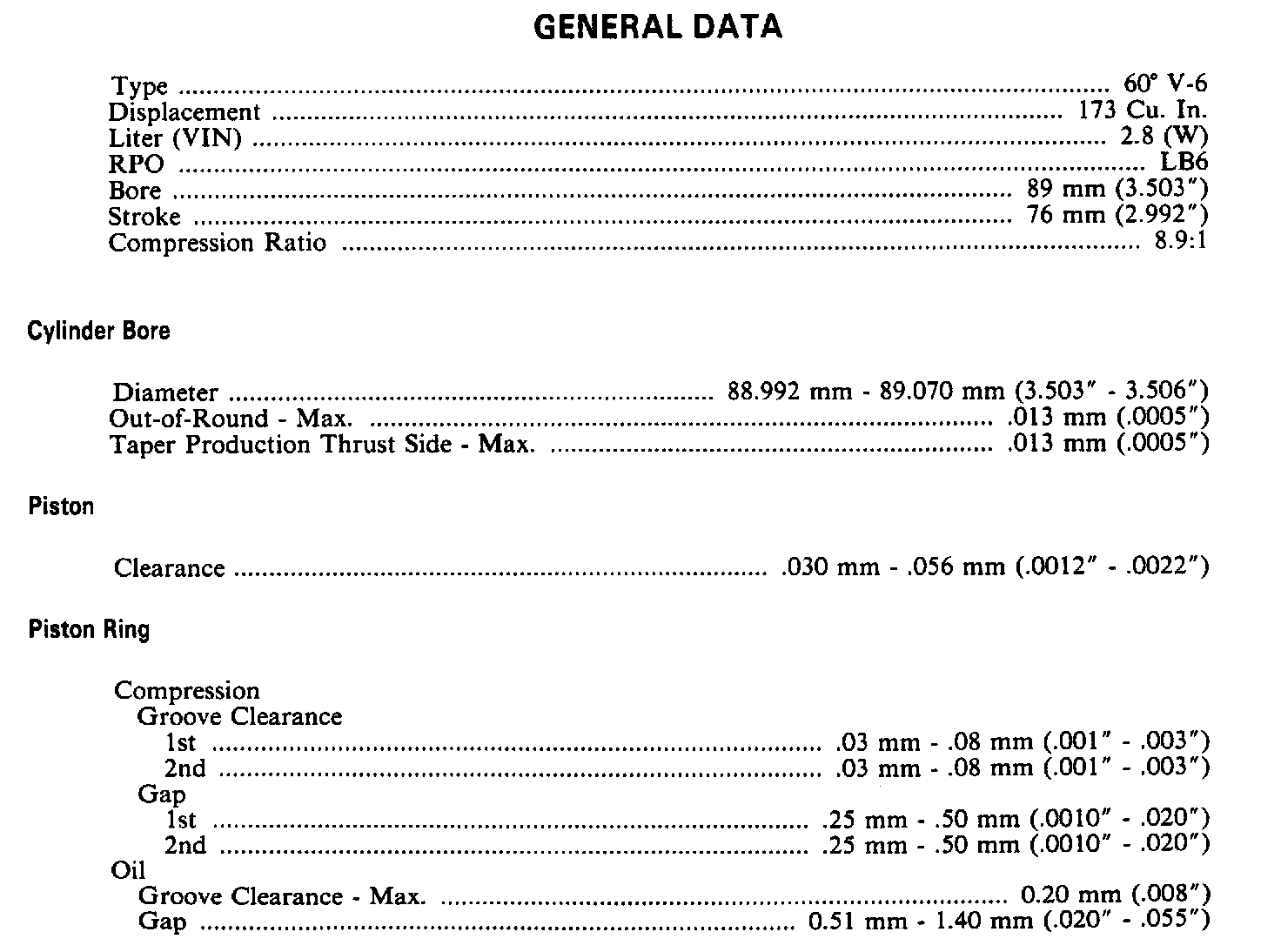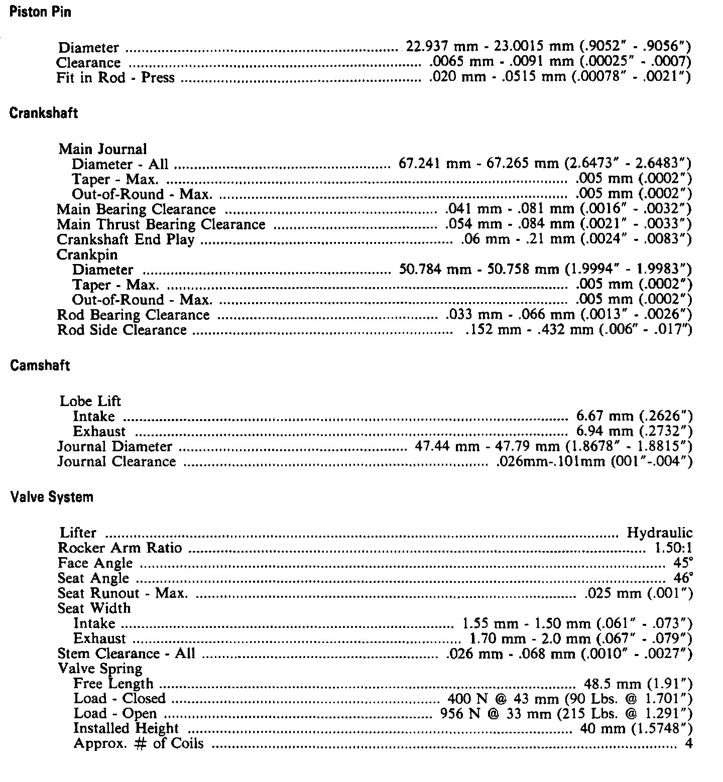 Continued Engine Specifications: