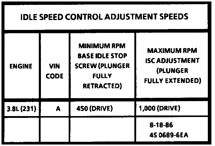 When a new Idle Speed Control (ISC) assembly is installed, a base (minimum) and extended (maximum) RPM speed check must be performed and adjustments made as required. When making low and high speed adjustments, the low speed adjustment is always made first. DO NOT use the ISC plunger to adjust curb idle speed as the idle speed is controlled by the ECM.