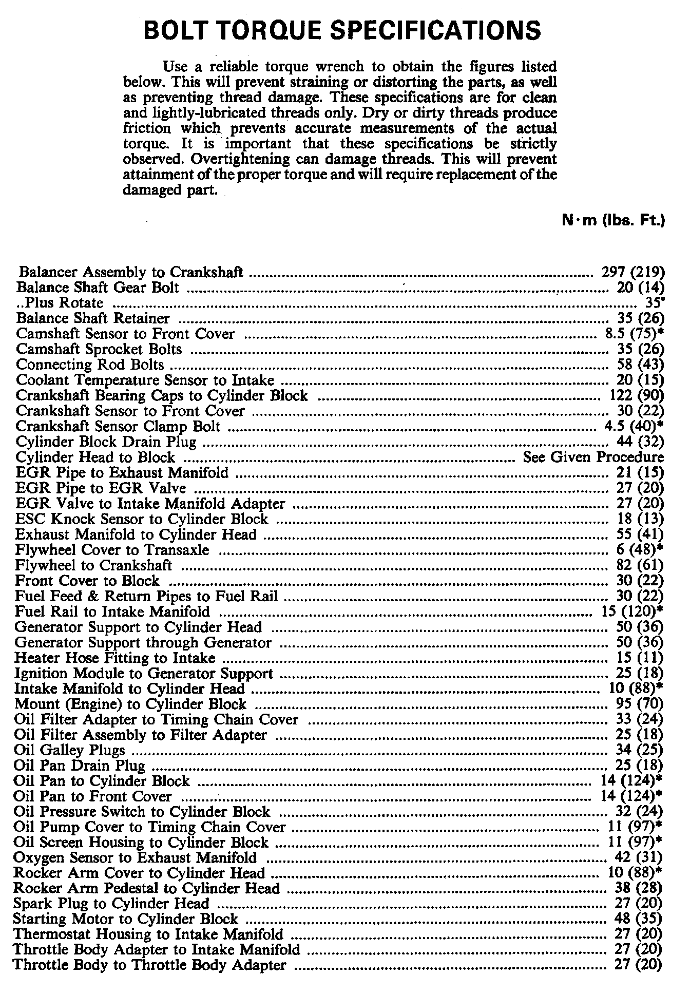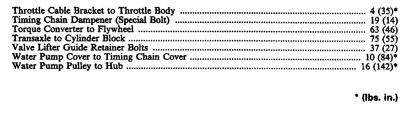 Torque Specifications: