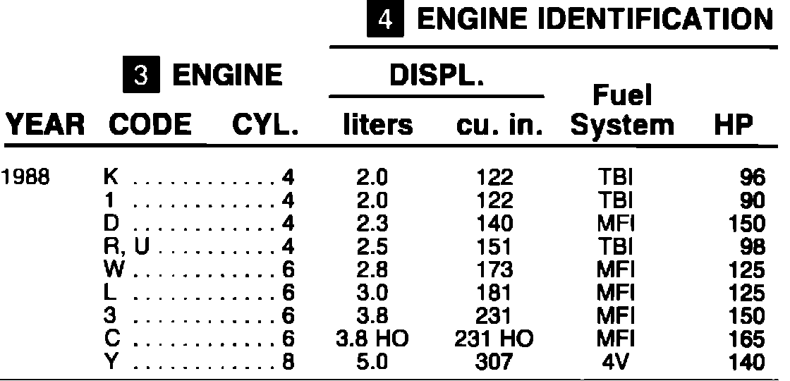 ENGINE IDENTIFICATION: On the line where the engine code appears, read to the right to identify the engine.