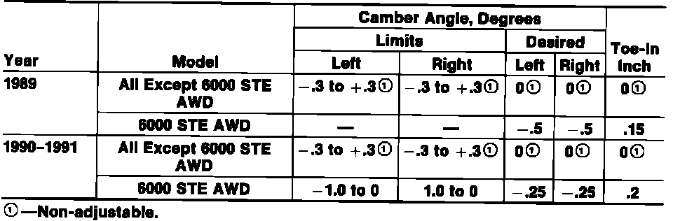 Rear Wheel Alignment Specifications: