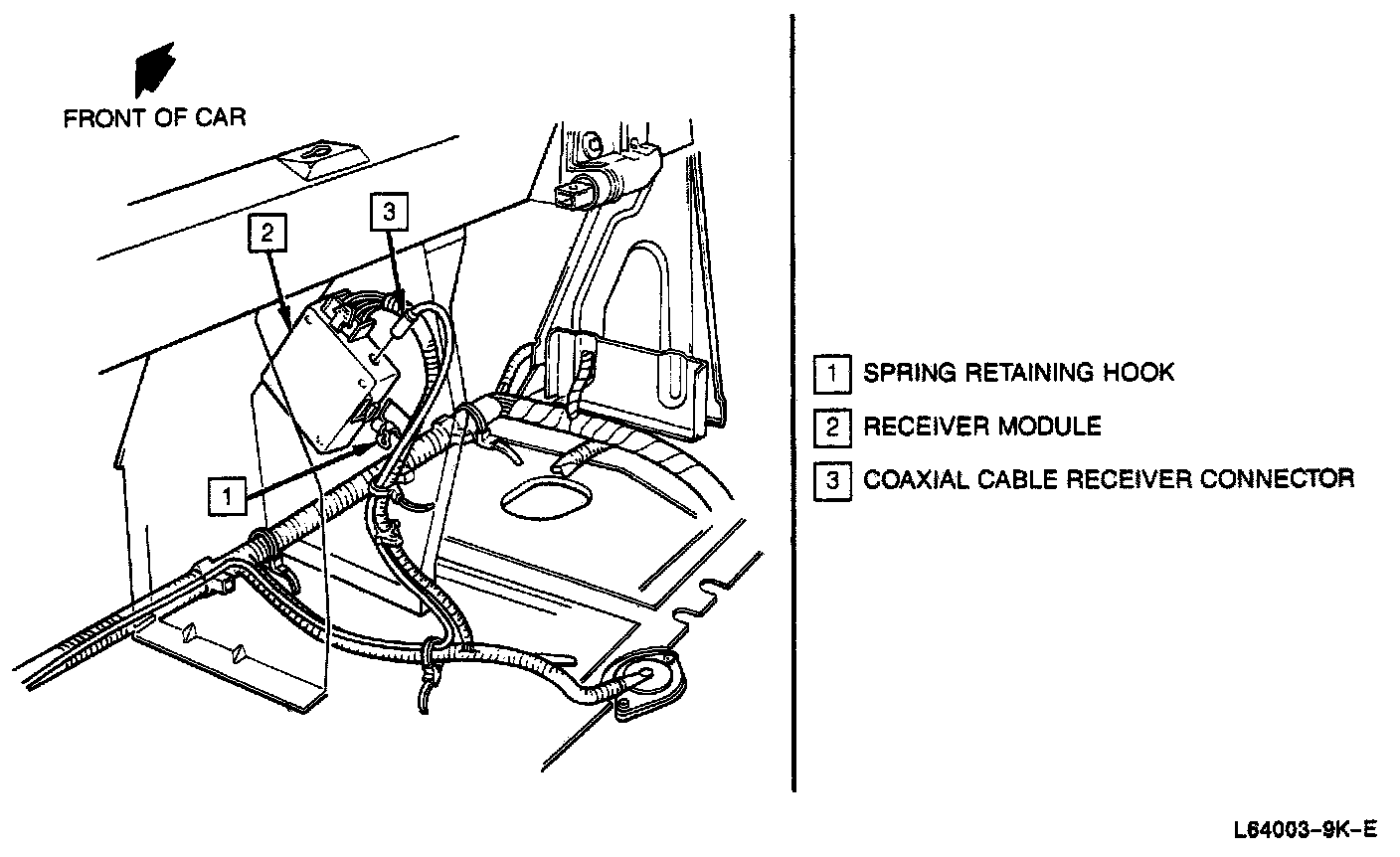 2. (Reatta Convertible) Ground single wire connector located at the left tonneau cover hinge on the tonneau body main connector.