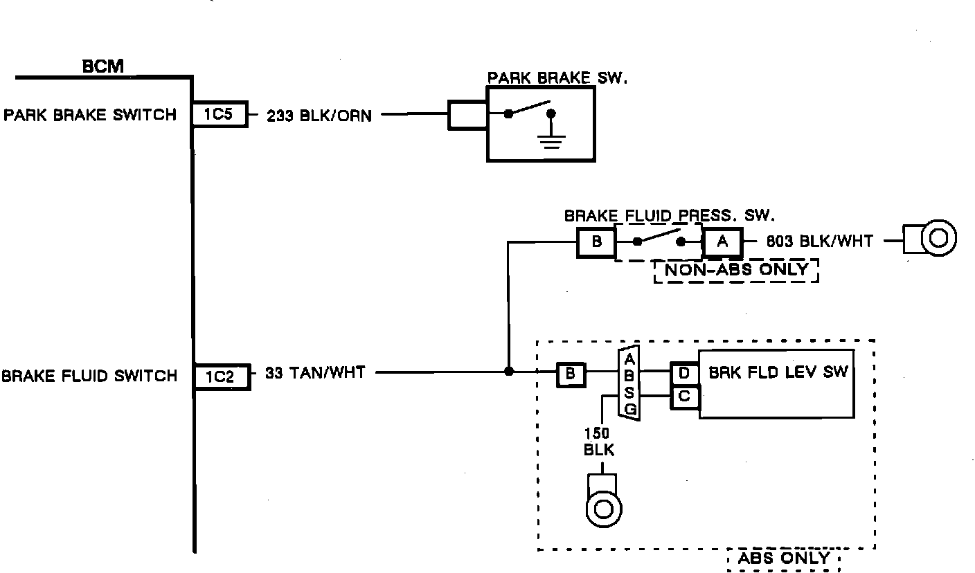 The BCM provides system voltage to the brake fluid circuits which will close to pull the line to ground. Once the BCM has determined that all the of the failure conditions have been met, it will send a message to the IPC instructing it to illuminate the "BRAKE" telltale.