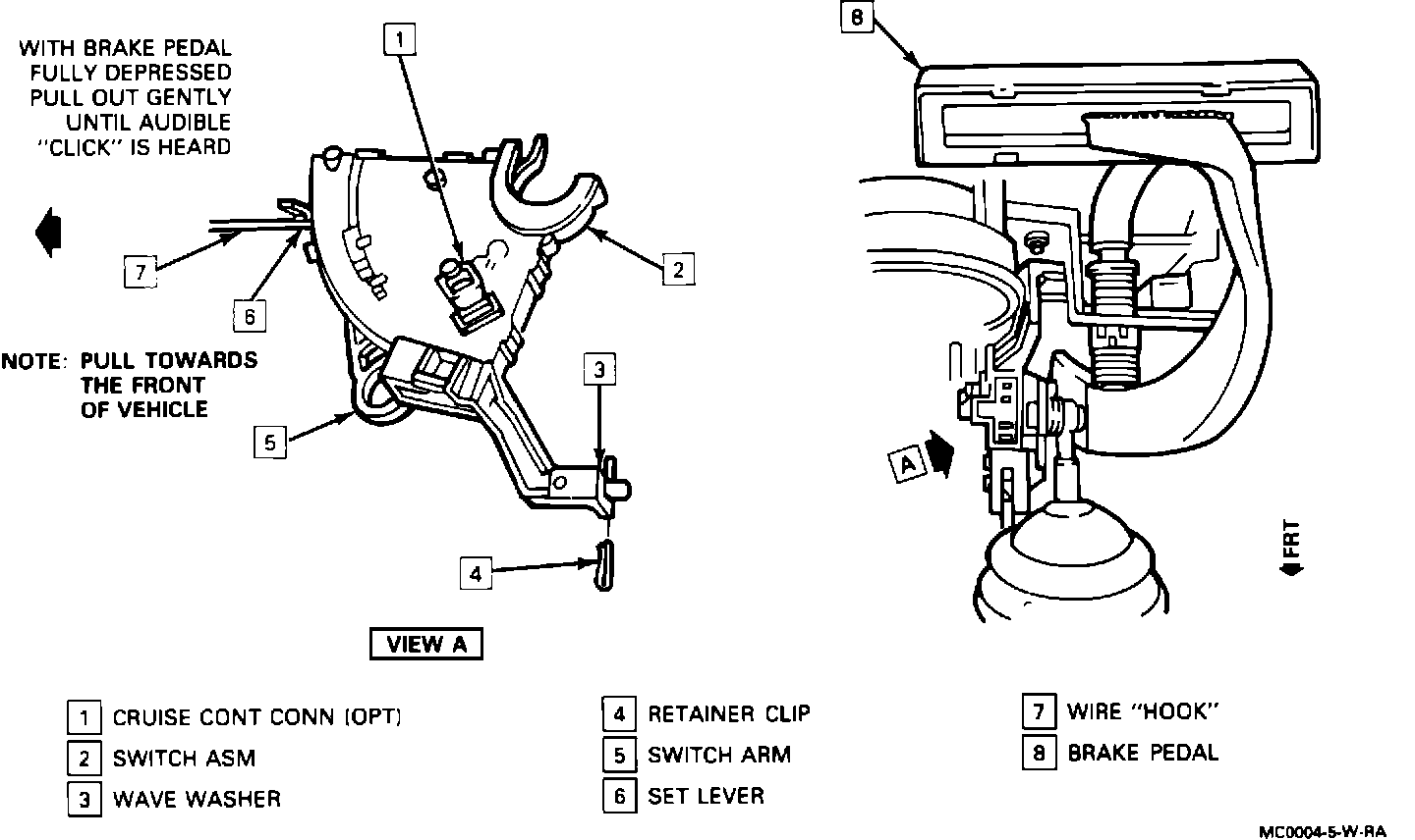 5. Retainer clip which holds stoplamp switch to steering column bracket.