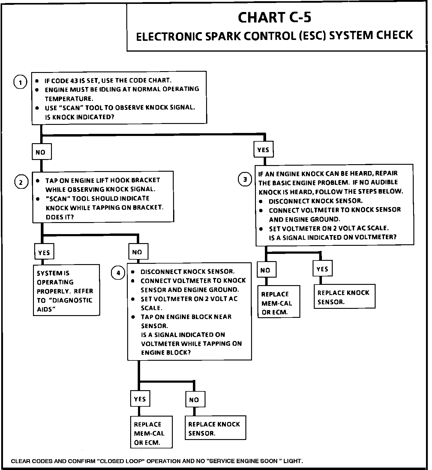 4. This test determines if the knock sensor is faulty or if the ESC portion of the Mem-Cal is faulty. If it is determined that the Mem-Cal is faulty, be sure that is is properly installed and latched into place. If not properly installed, repair and retest.