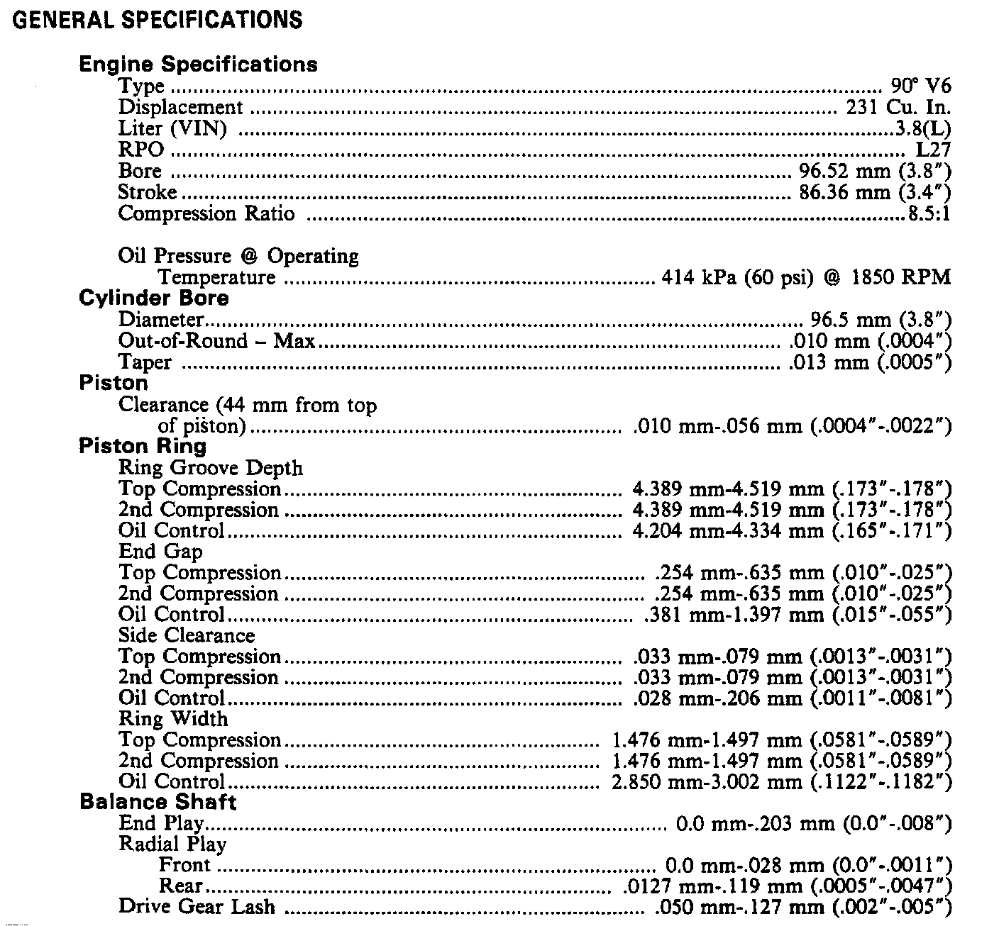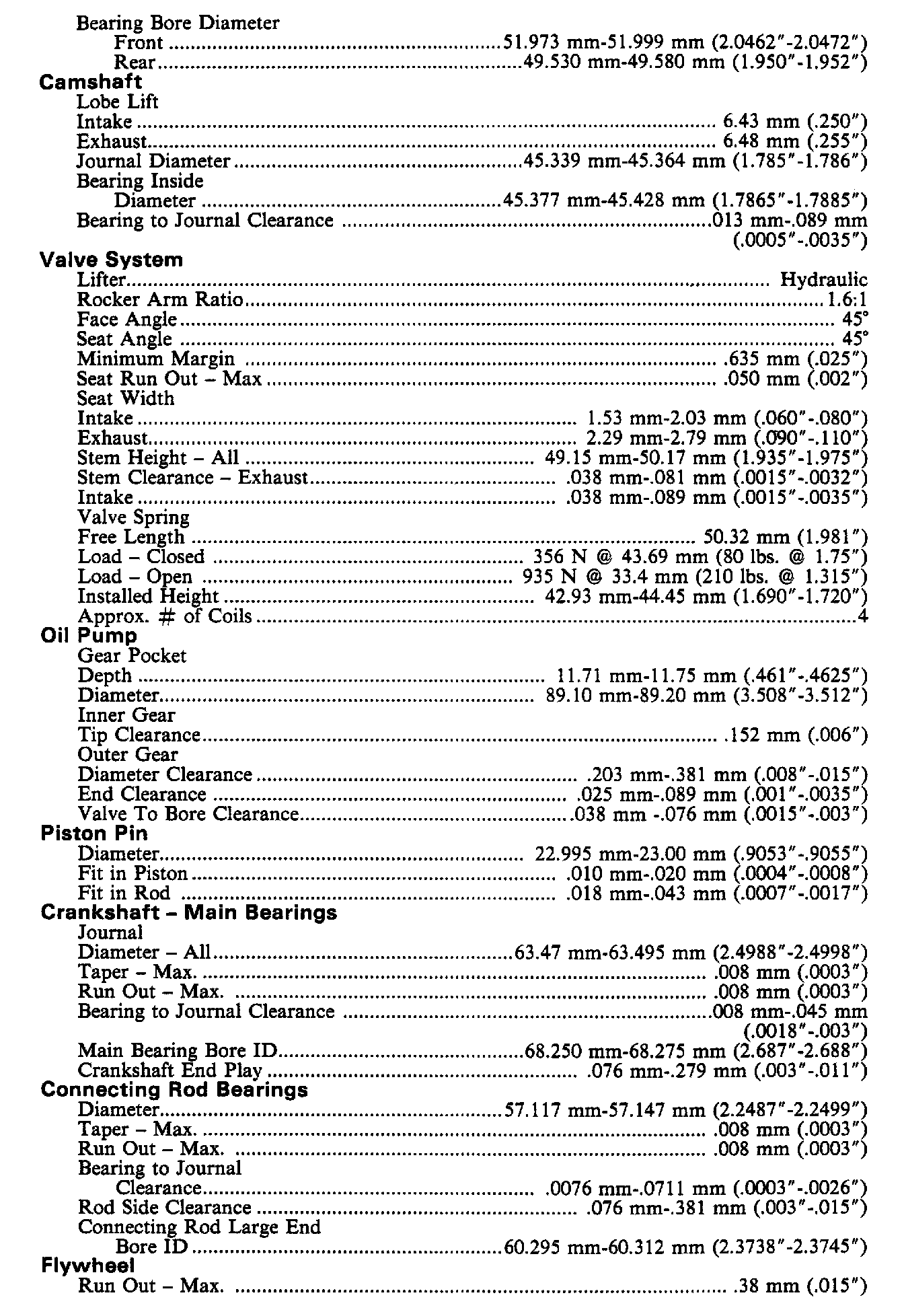 Continued Engine Specifications: