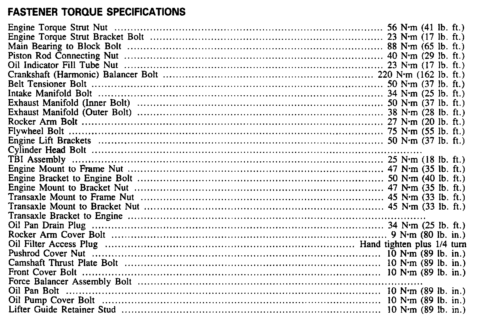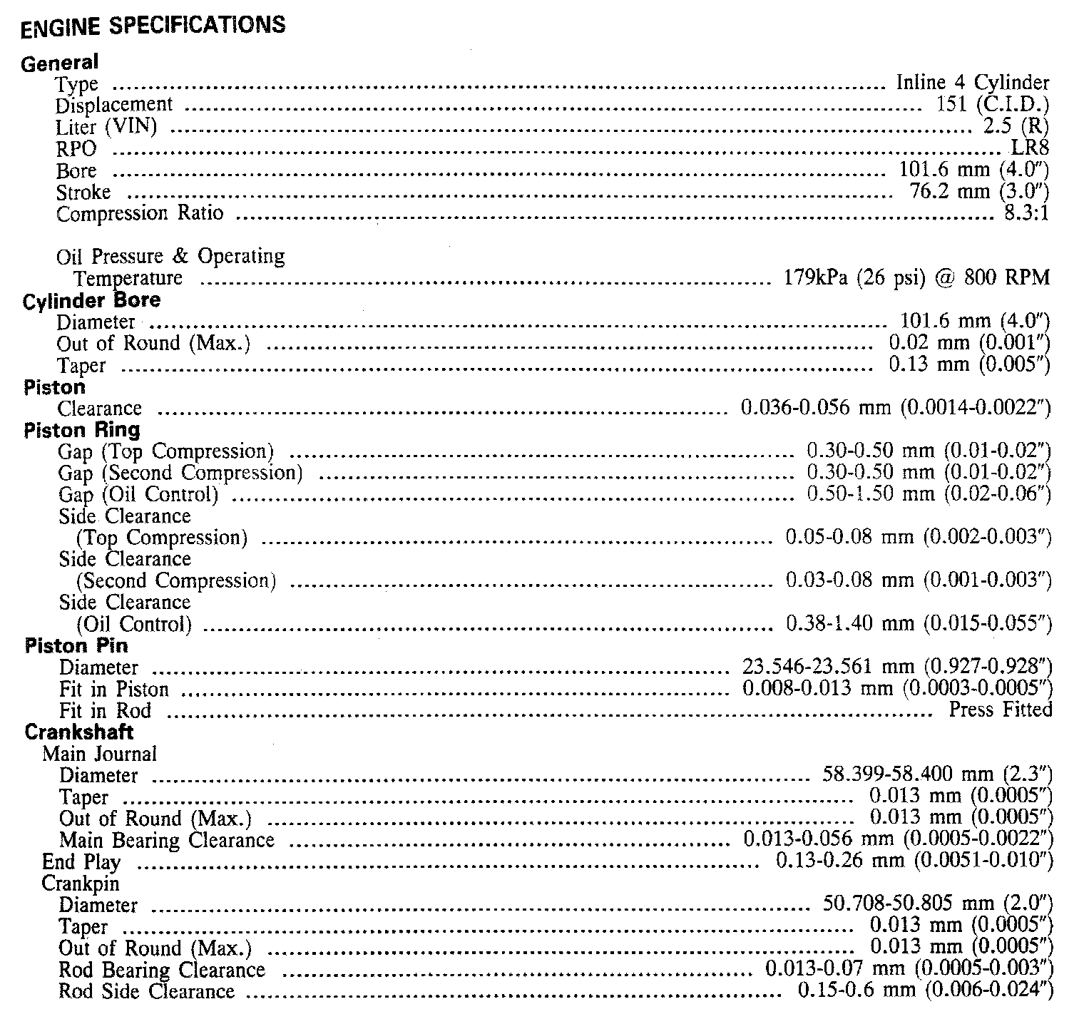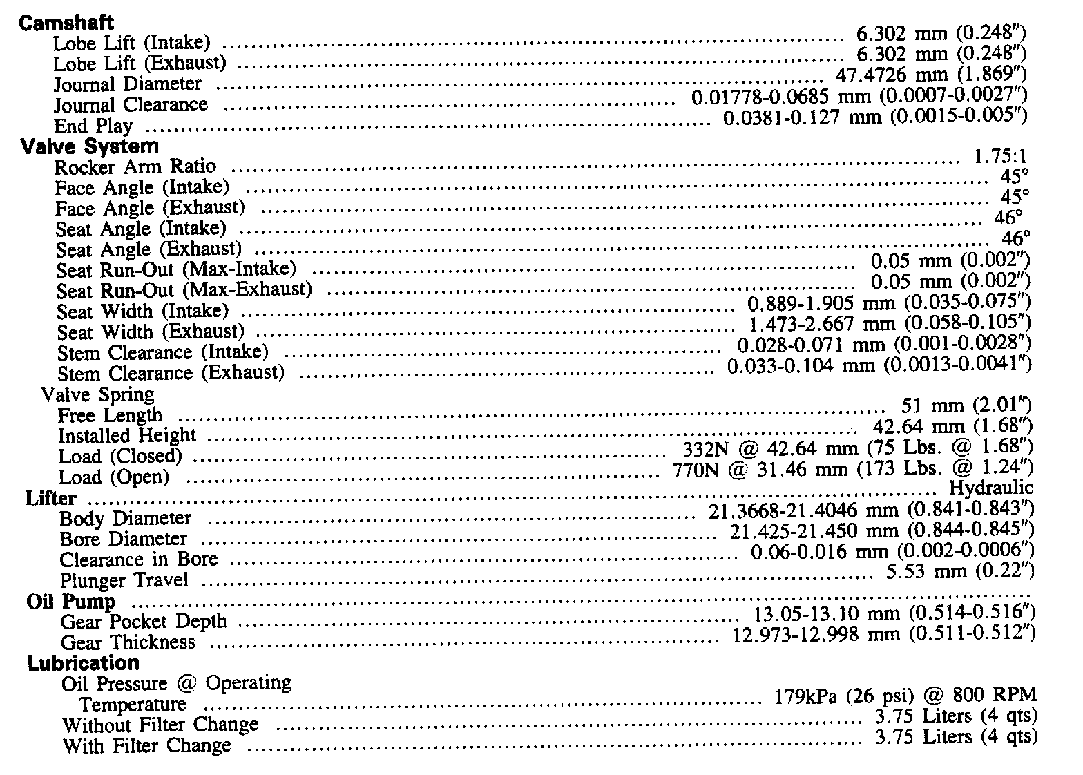 Continued Engine Specifications: