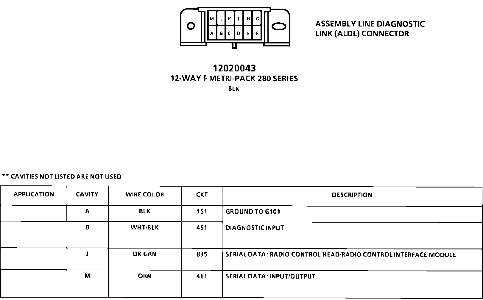 Assembly Line Diagnostic Link (ALDL) Connector Face: