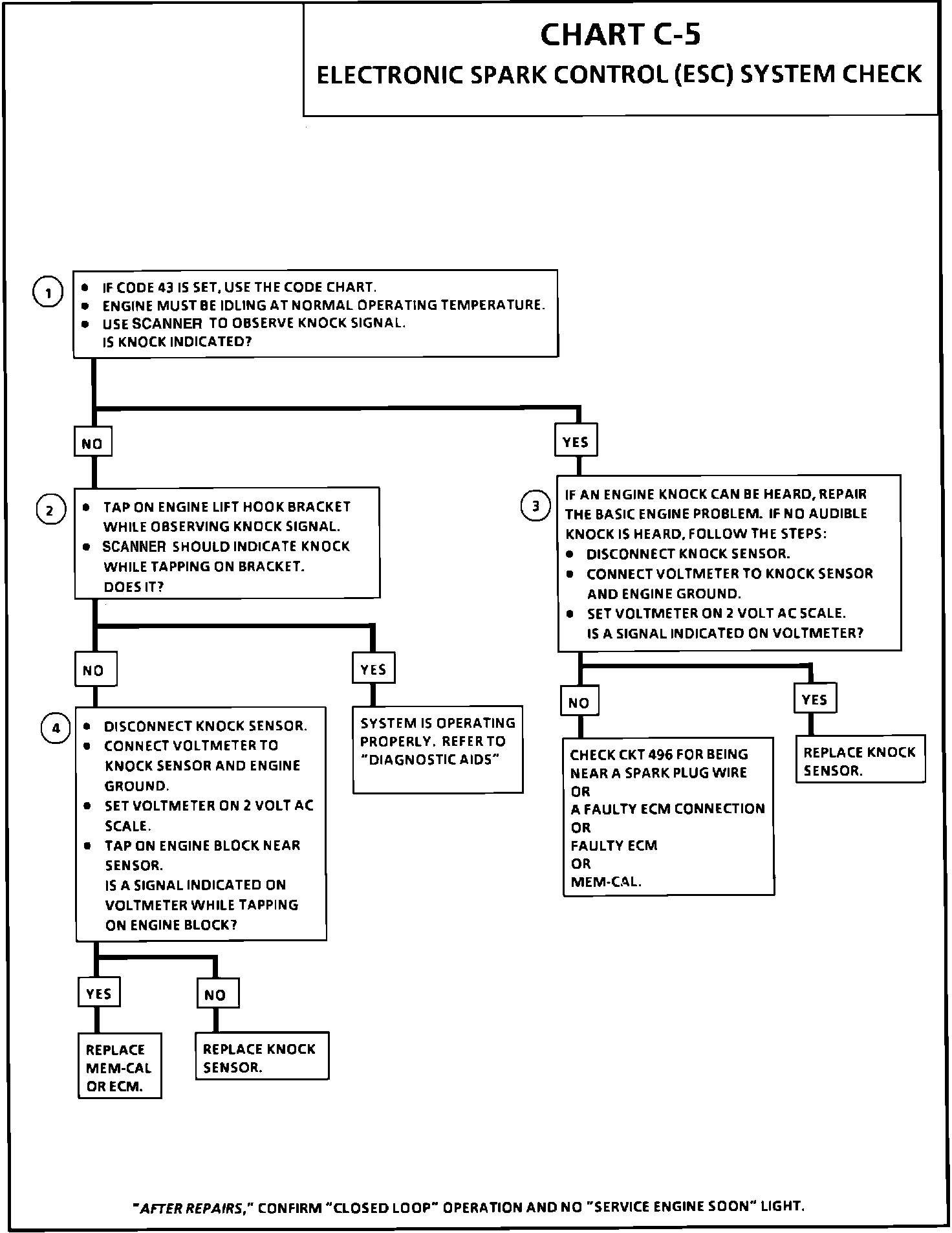 4. This test determines if the knock sensor is faulty or if the ESC portion of the Mem-Cal is faulty. If it is determined that the Mem-Cal is faulty, be sure that is is properly installed and latched into place. If not properly installed, repair and retest.