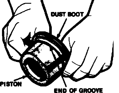 2. Lubricate piston with clean brake fluid and assemble a new boot into the groove in the piston so the fold faces the open end of the piston, Fig. 5.